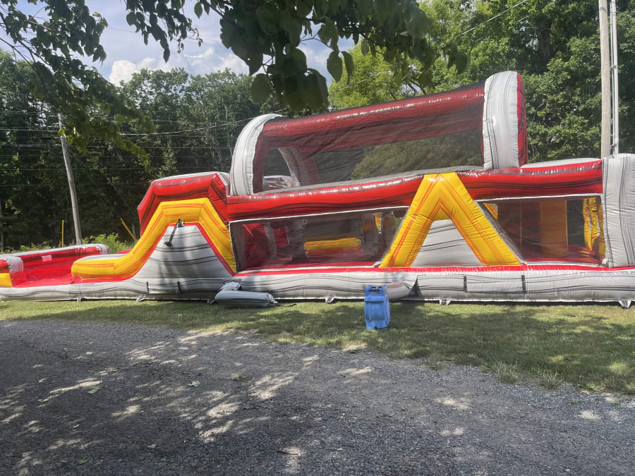 Whether you're hosting a birthday party, school event, corporate gathering, or community festival, the 46ft Fire Island Wet/Dry Obstacle Course is guaranteed to be a hit! Create unforgettable memories with this fantastic attraction!