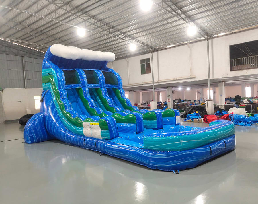 Take your summer party or event to the next level with the 16ft Tropical Wave Dual Center Climb, the ultimate centerpiece for fun and excitement. Dive into a world of tropical adventure with this vibrant, eye-catching water slide that promises hours of thrill and entertainment for all ages.